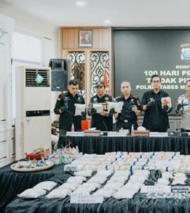 Dalam konferensi Pers 100 hari pemberantasan Tindak pidana Narkoba Polrestabes Medan dan polsek beserta jajarannya telah berhasil mengamankan barang bukti Narkoba sekitar 156 kilogram jenis Sabu , 60.000 butir ekstasi ,300 pod vaping liguid yang didalamnya berisikan kandungan Narkoba dan jenis Narkoba lainnya sudah diungkap dan disita oleh Polrestabes Medan.